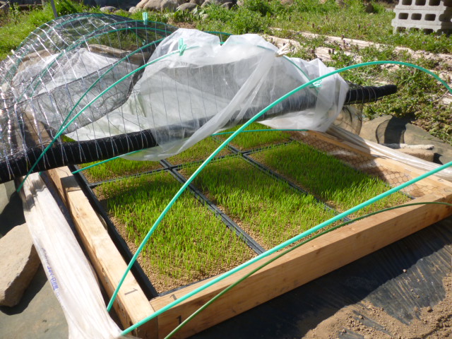 金曜日は、菜園の風除けに薪小屋を2台(写真@)置いたので