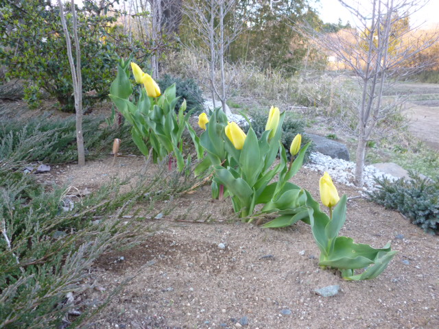 昨日・今日の暖かさで、我が家の庭のチューリップも咲いた(写真A)