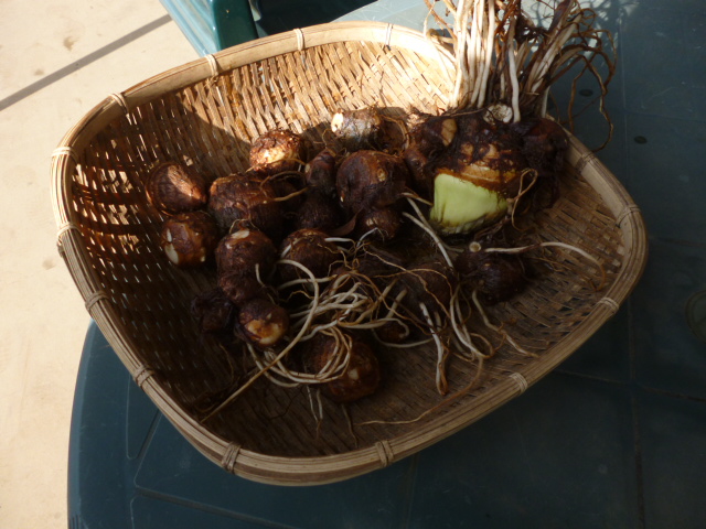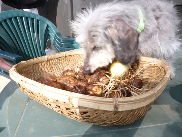友人から里芋(写真)の株の塊をお裾分け頂いただワン