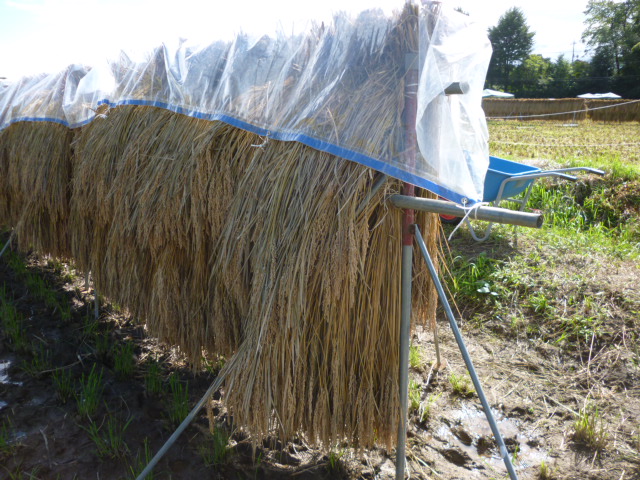 (写真A)先週はざがけした稲🌾・・・雨よけもしてだいぶ乾燥しているだワン