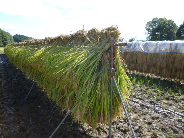 (写真B)今日はざがけした稲🌾・・・緑色しているだワン