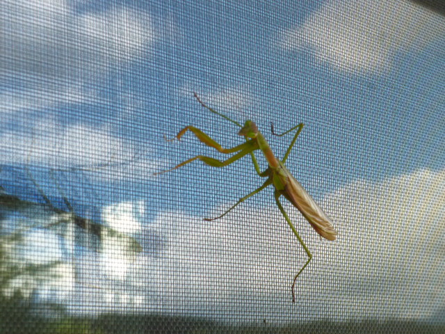 昨日、大きなカマキリ(写真@A)が網戸に暫く滞在していただワン