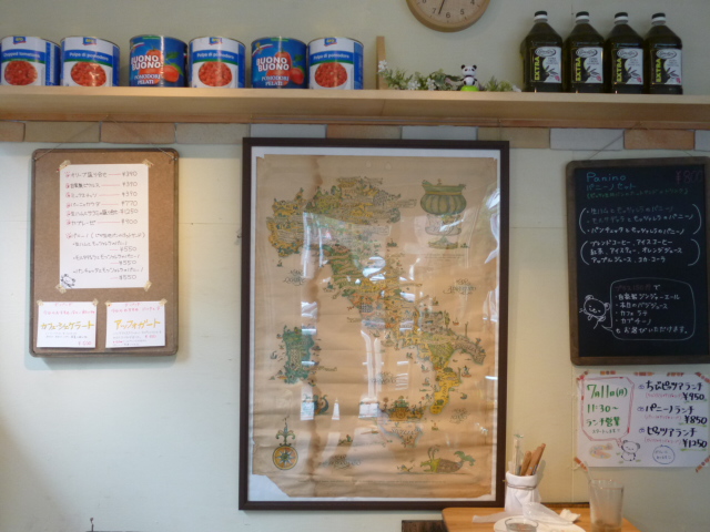 イタリアワイン産地の古地図が正面の壁にあります
