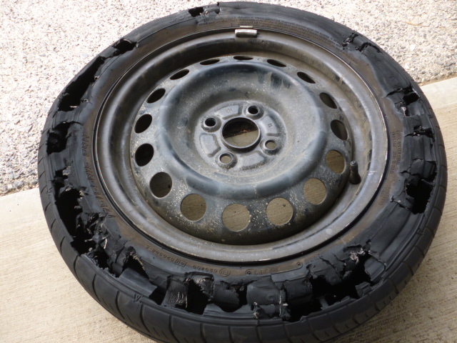 帰りの高速道路走行中にタイヤがバースト(写真A)して危なかっただワン