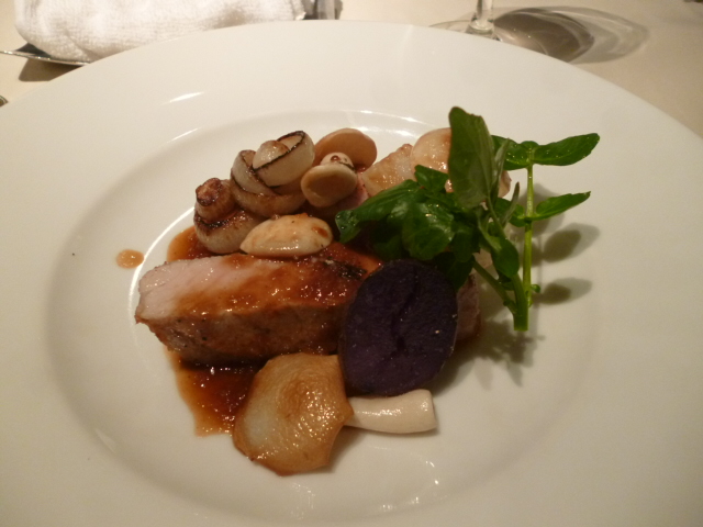(写真A)メインディッシュ:熟成かけたワイン豚ロース肉