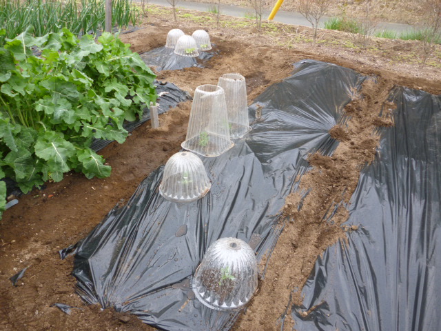(写真@)畑にマルチを敷きジャガイモ4s・・・昨年は4月10日植付
