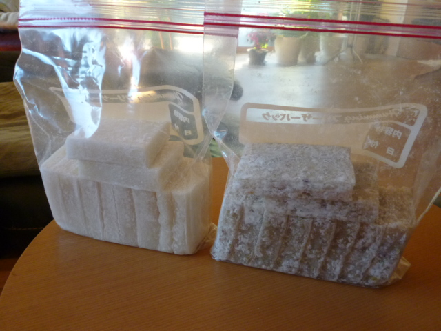 ご近所から、昨日搗いた2種類のお餅(写真)を頂いただワン