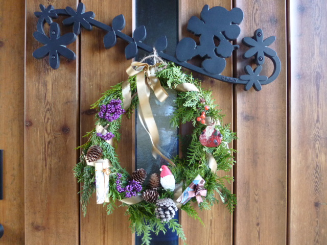 (写真@)玄関に飾った奥様作成のクリスマスリース