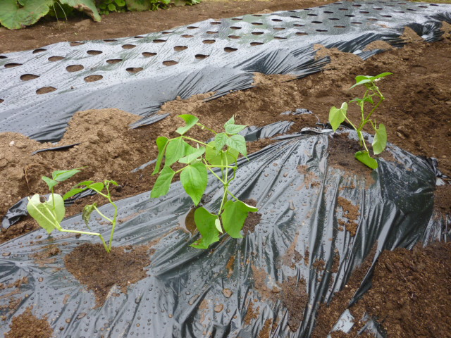 菜園にマルチ【写真Aの奥】を敷いて、ちぢみほうれん草の種を蒔いただワン