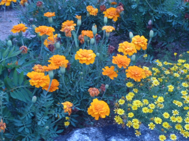 庭のひまわり🌻(写真@)とマリーゴールド(写真A)が咲いただワン