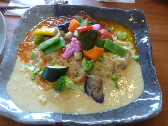 (写真A)カニクリーム&トマトベースのハーフ&ハーフカレー