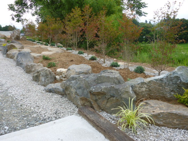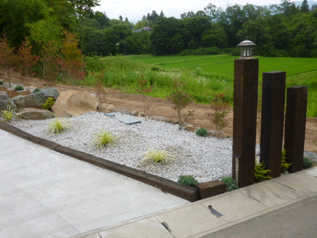 (写真@)入口からの全景・・石積・エントランスの工事でした