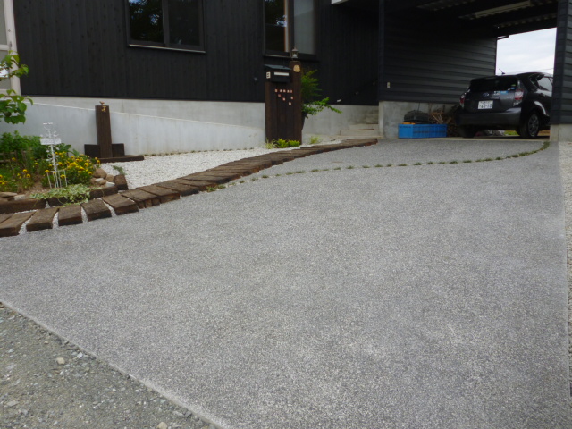 ・・・枕木の木道と洗い出しコンクリート