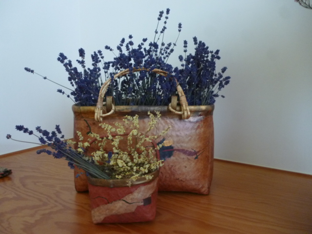 (写真B)一閑張の籠に活けました