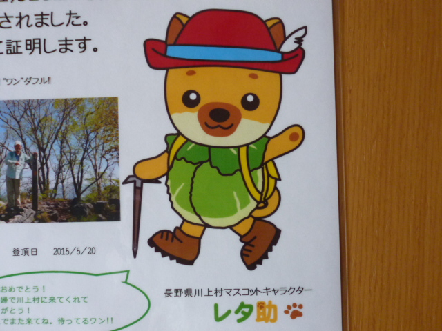 先日登った横尾山の登頂証明書(写真)が川上村から届いた