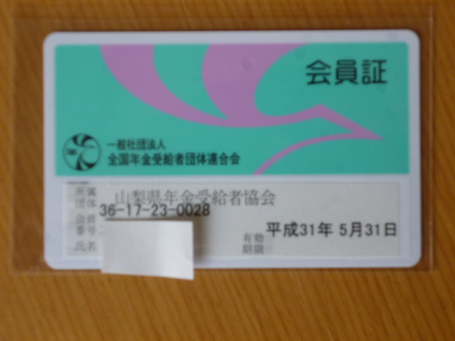 ご主人様は山梨県年金受給者協会に加入したので、会員証(写真)も届いただワン