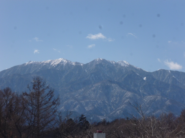 写真は高速バスの停留所からの甲斐駒ケ岳と鳳凰三山だワン