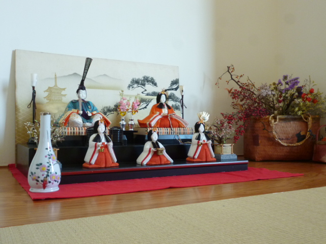 店の玄関にお雛様とつるし雛(写真)が飾っていただワン・・・早く春が来いだワン