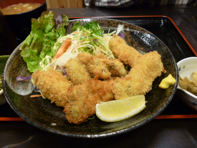 昼ご飯は、久しぶりに「和信」で写真の刺身定食@1,080カキフライ定食@1,296を