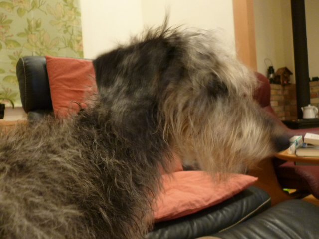 室内が少し冷えたので、薪ストーブに初火入れ(写真)をしただワン