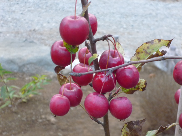 (写真)庭のもみじと姫リンゴ🍎が紅葉してきただワン