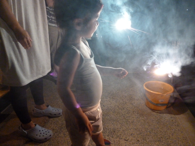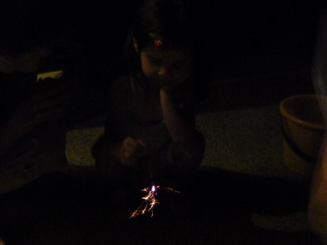 夜、初めての花火🎇をしたので孫は大喜びだったワン