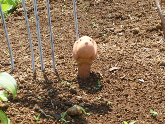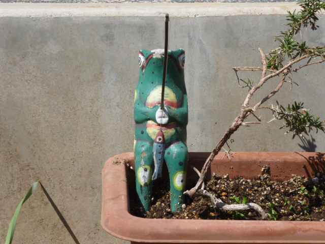 A庭のプランターに「蛙の置物」・・・たしかバリ島で買った物