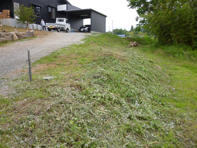 ご主人様は、購入した写真の「刈払機」で敷地の