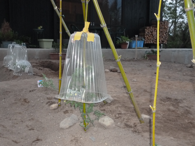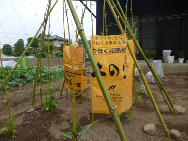 野菜苗を守るため農家の方が行っている肥料の袋を利用