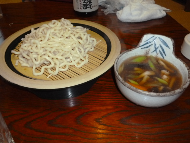 A「おざら」を食べたのだワン(ほうとうの麺を水で締め、野菜・肉などの具材の入った温かいつけ汁)