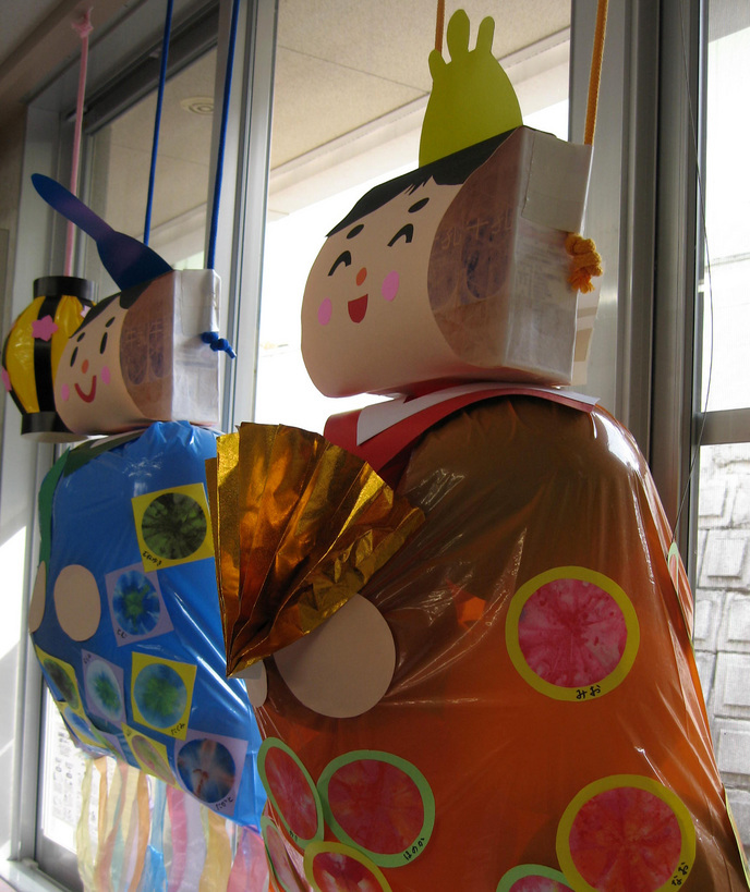 お内裏様、お雛様の着物を和紙染めで模様を作り