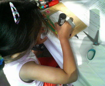 ウイスキー樽材でフォトスタンド作成コーナーがあり、お姉ちゃん、お母さんに手助けして貰いながら作って家路へ。