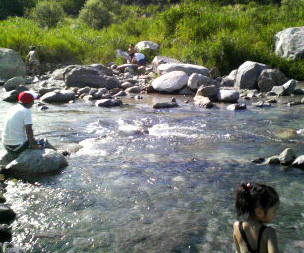 イベントの流しそうめんごちそうになり、近くの釜無川で川遊びして、