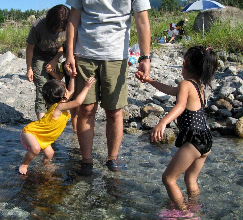 我が家の娘たちも川の水の冷たさに嫌がるかと思っていたが、