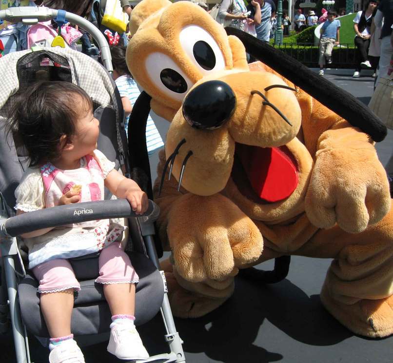 もう一度お姉ちゃんにイッツ・ア・スモールワールド見に行こうか?「怖くない?」怖くないよ。 魔法使いのお婆さんは出てこないよと言い聞かせながら並び、 丁度、時計の前に差し掛かった頃1時半。時計の中から人形が出てきて、「うわぁーすごい!」 どう?魔法使いのお婆さんは出てこなかったでしょ?怖くないよね。「うん。」 やっと元気が出てきた。(^^)ホッ。イッツ・ア・スモールワールド出てきた後、今度はお姉ちゃんがお昼寝。 この間利用して、妹の初TDL記念してシルエットスタジオでお姉ちゃんも作った、 横顔シルエット切って貰い、ピグレット、プルート他と一緒に写真撮影した。 ミクロアドベンチャーFP取った頃、お姉ちゃん起きたので、イージーワークスで家族4人写真撮影。 ミクロアドベンチャー出てくると、丁度ディズニー・ドリームス・オン・パレードムービン・オンの最中。これを見て姉妹大喜び。 最後は、Tokyo Disneyland Erectorikaru parade dream rights!! 最初から最後まで、姉妹そろって立って手を振り歓喜の声。 正直娘2人に圧倒されてしまった。さあ、お土産かって帰ろう。 |
