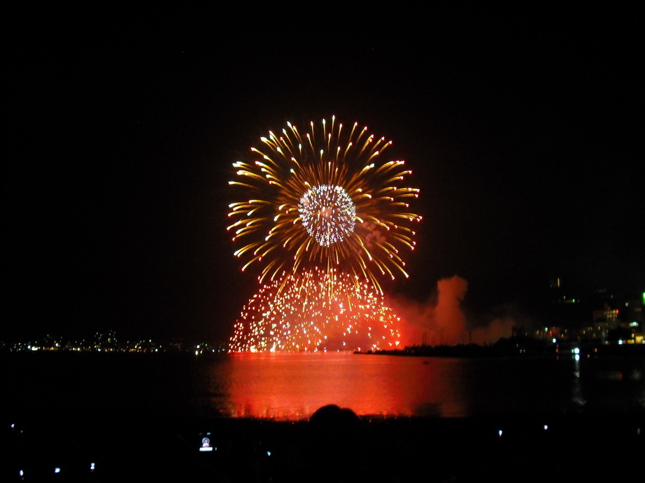 8月15日は、1度見たいと思っていた、諏訪の花火を、今回月曜日だったので見に行ってきました、お昼に出て1時位に諏訪のインターについたのに、もうすでに渋滞が少し始まっていましたがちょうどいい時間だったのかな・・・?湖畔から歩いて30分位の無料の駐車場に止めました、花火が上がるまでの時間が長くたいくつでしたが、まだ少し曇っていたのでたすかりました。 諏訪の花火は、迫力があり、特に最後の水上スターマインの花火は最高でした。 帰りも11時過ぎにつき以外と早く帰ってこれました。