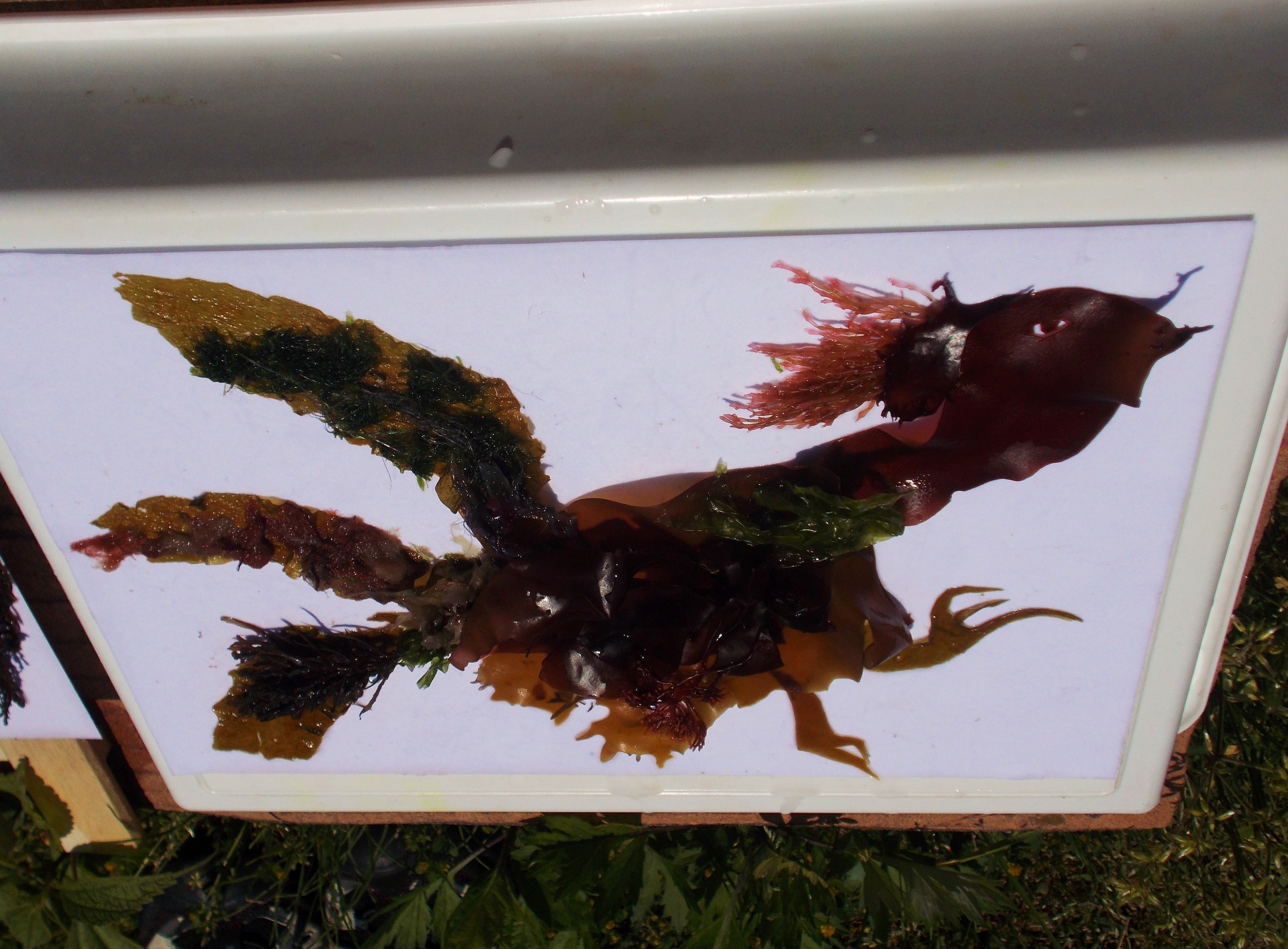 磯に繁茂している色々な海藻を採取し、 翌日まで暫く乾燥させた後で、 思い思いに海藻を組み合わせて、 「押し花」の様に、1枚の「押し花絵」を、 作ってもらいました。