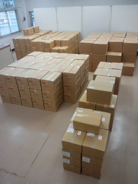 中をのぞいたら、二人の女性スタッフが、遅くまで黙々と仕分け作業にあたってくださってました。