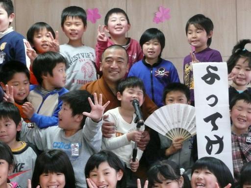 写真は、左、気仙沼市立面瀬小学校にて。