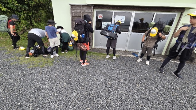 4班は、中ノ郷の屋内運動場を後にして、 1班同様、登龍峠を越えて、 ベースキャンプに戻って来ます。 |