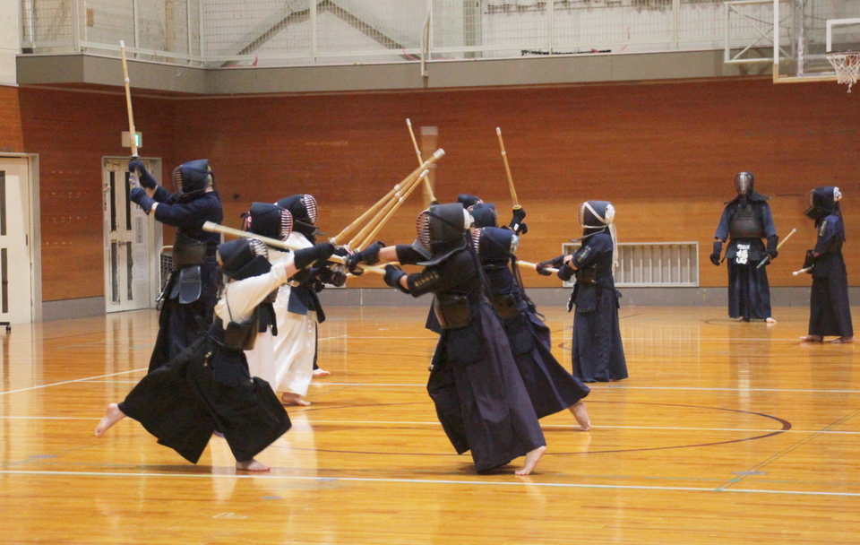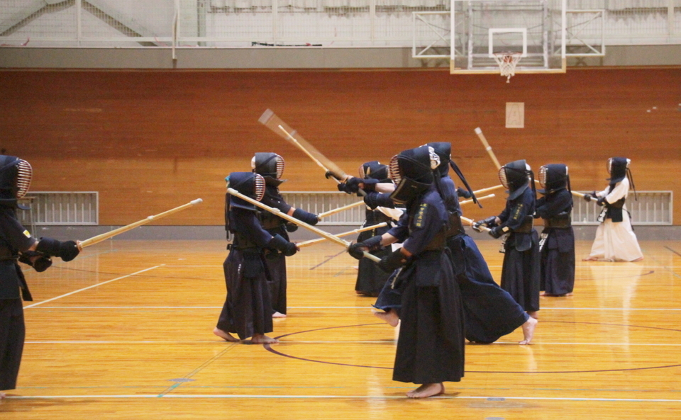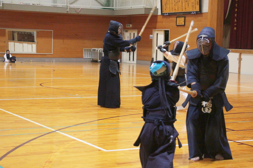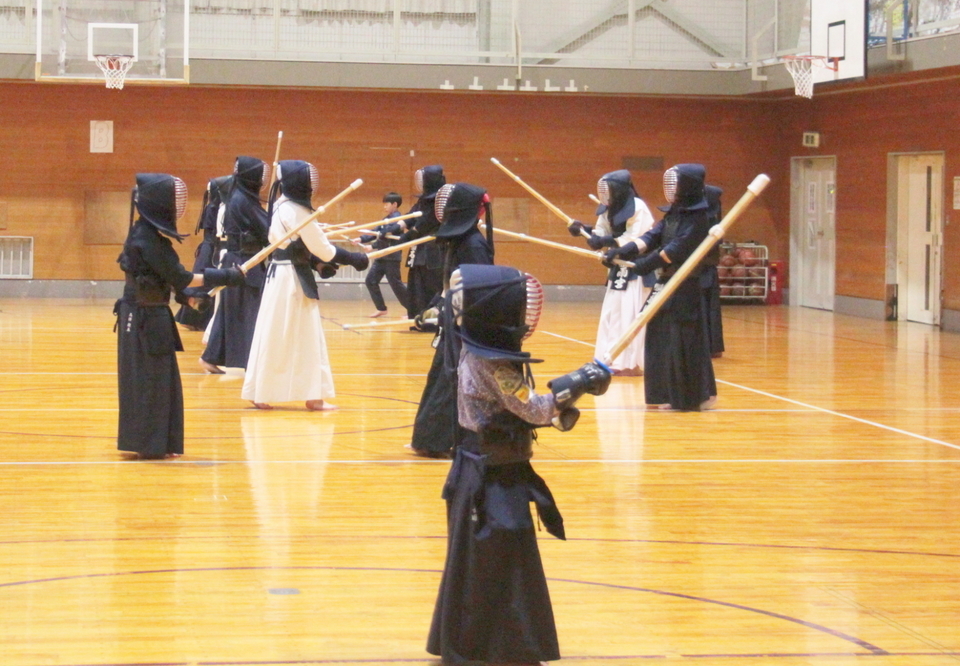 試合者として、甲府南高、日本航空高、富士河口湖高の剣道部員36人が参加協力をしてくださり、午前午後と計3時間余りの長時間にわたって計120試合ほどの試合をしてくれました。