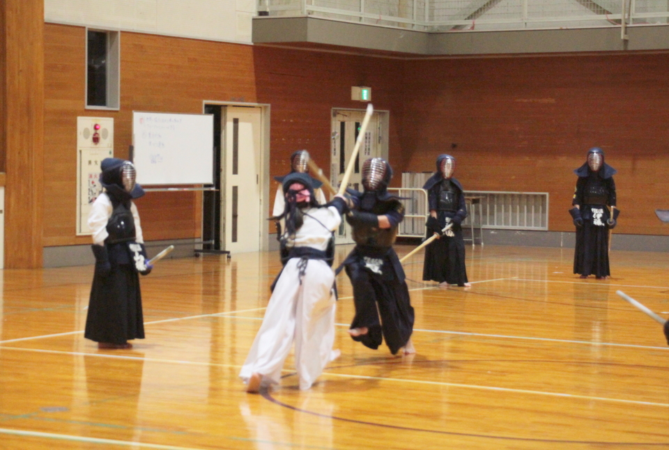 有効打突の見極めや審判旗の表示の仕方、有効打突を見極めるために大切な審判員の位置取りの大切さ、反則行為を見逃さないことなどを重点に審判実技を学びました。