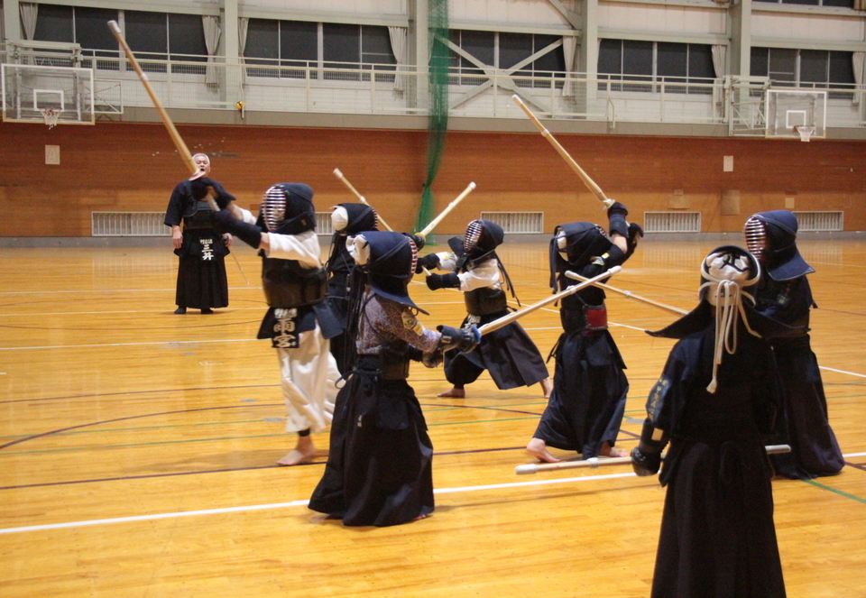 面着け後は20分間。切り返し、面打ちの後は、相面2本を9人の相手と全員が行いました。この後は1分ほどの地稽古を5人と行い、切り返しで稽古を締めました。