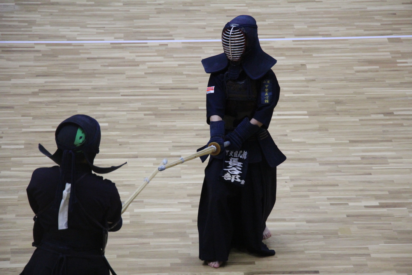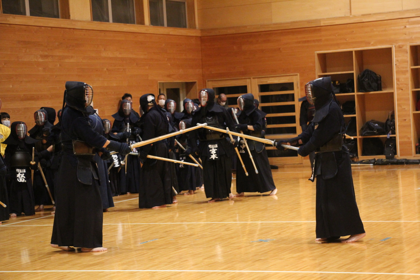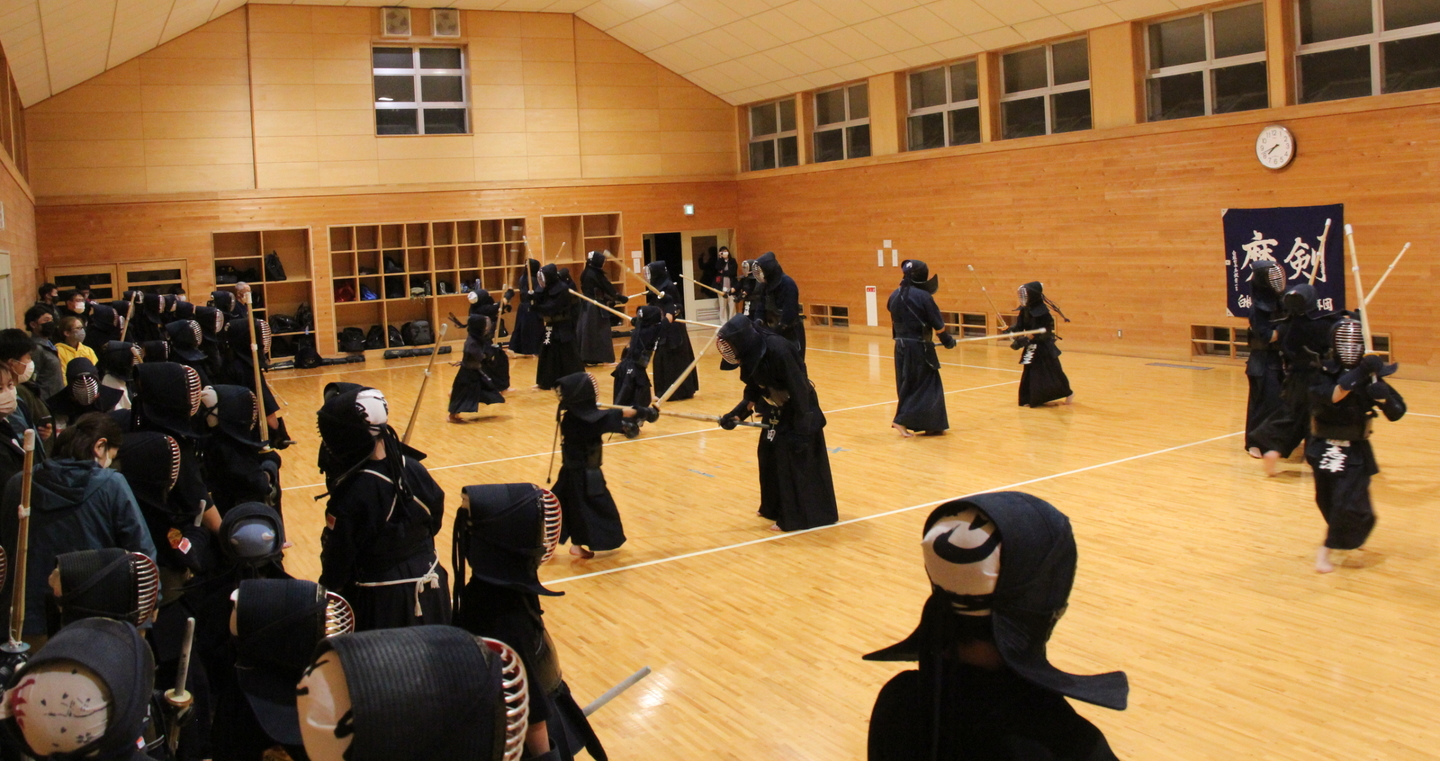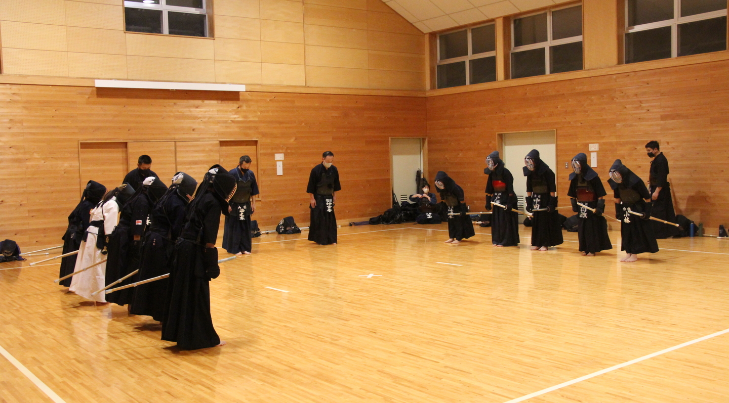 面着け後は切り返し、面の打ち込み、面体当たり引き面、連続技を稽古して、地稽古を行いました。