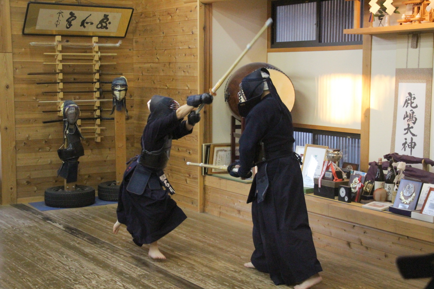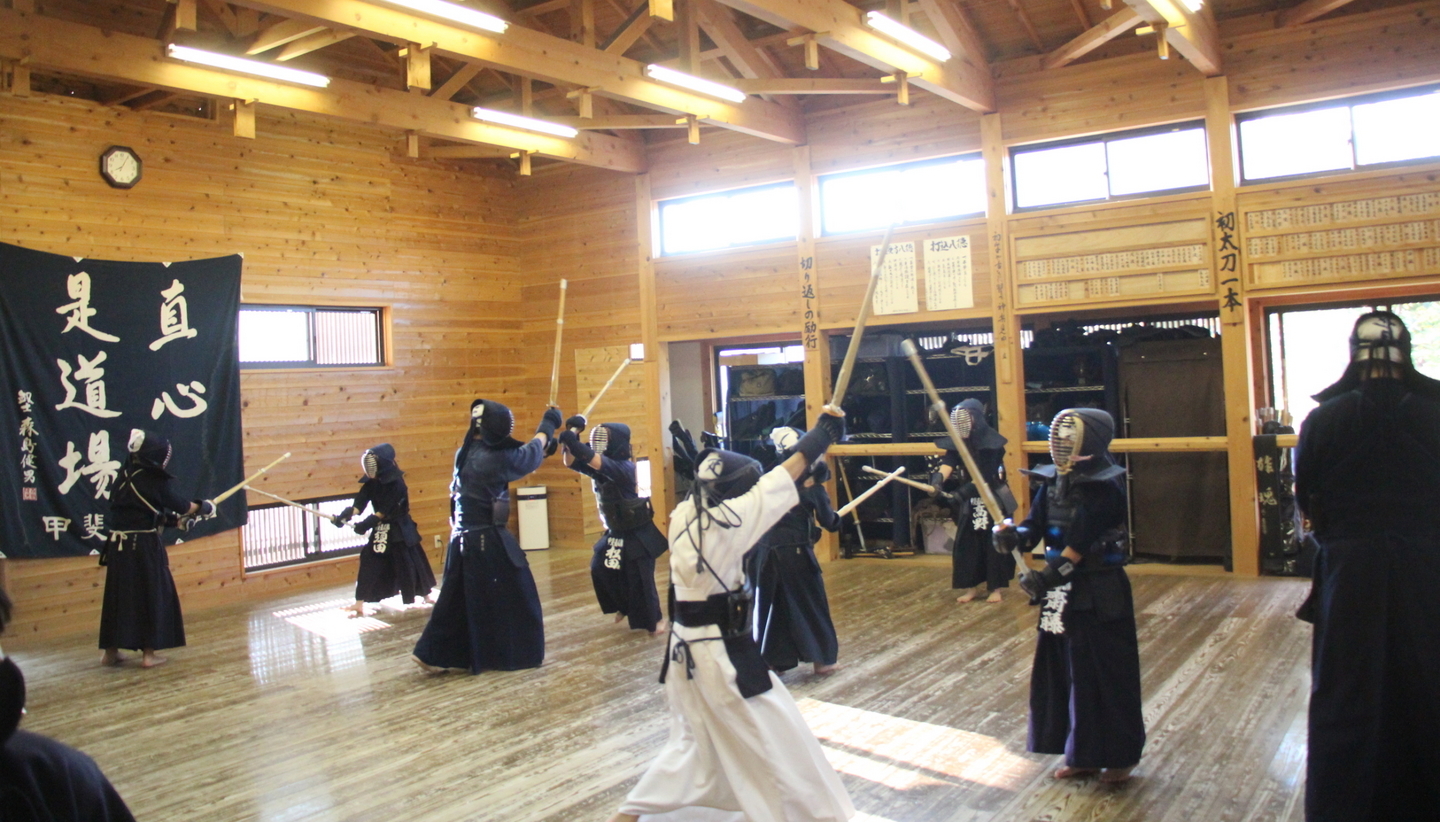 甲斐直心館道場で丹澤孝之居合道教士七段を講師に招いて居合道稽古会を日曜午前6時から、隔週ペースで行っています。現在、指導者3人、高校生1人が参加していますが、館生の保護者の中から3人の参加希望がとどいています。当初は服装はジャージー、体操着などで結構です。ただし、両膝のサポーターをご用意ください。