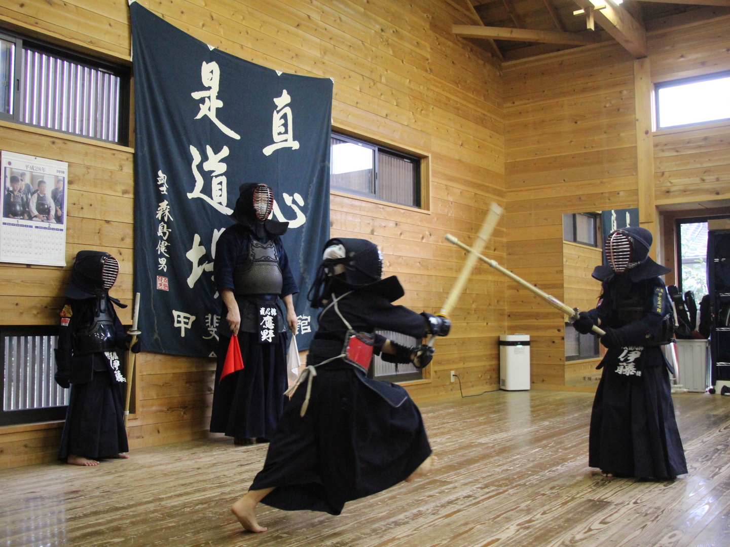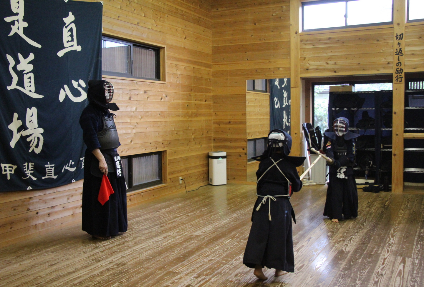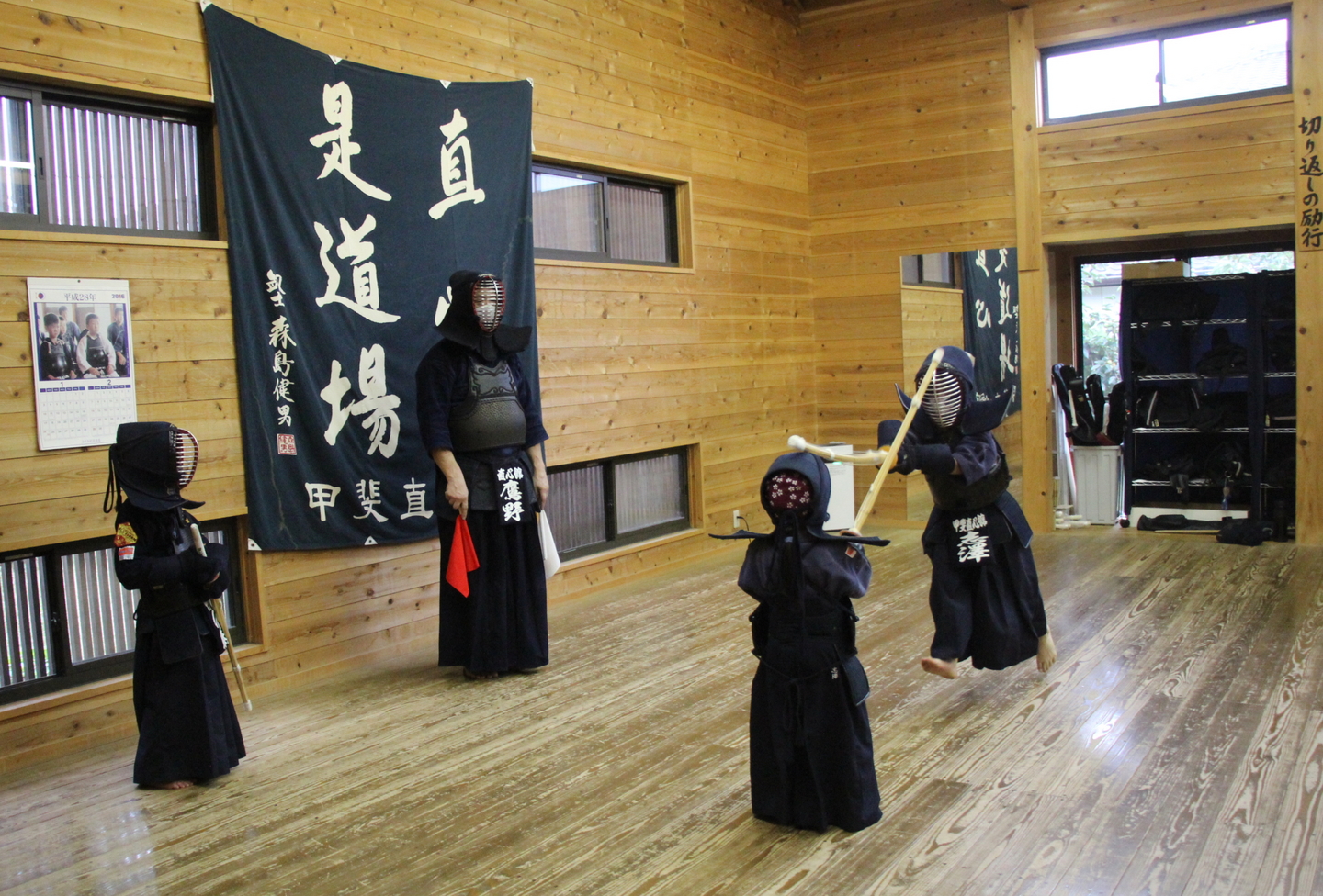 文化庁委託の伝統文化親子教室事業「甲斐市親子剣道教室」の11回目教室を9月17日(土)夕、甲斐直心館道場で行いました。室温28度、湿度55%。ほんの2〜3度下がっただけでもずいぶん涼しくなった感覚ですが、まだ暑いことは暑いです。大型で猛烈な台風14号の影響が心配される3連休初日です。