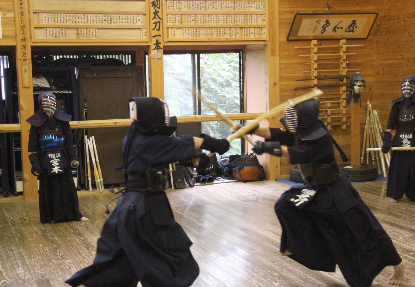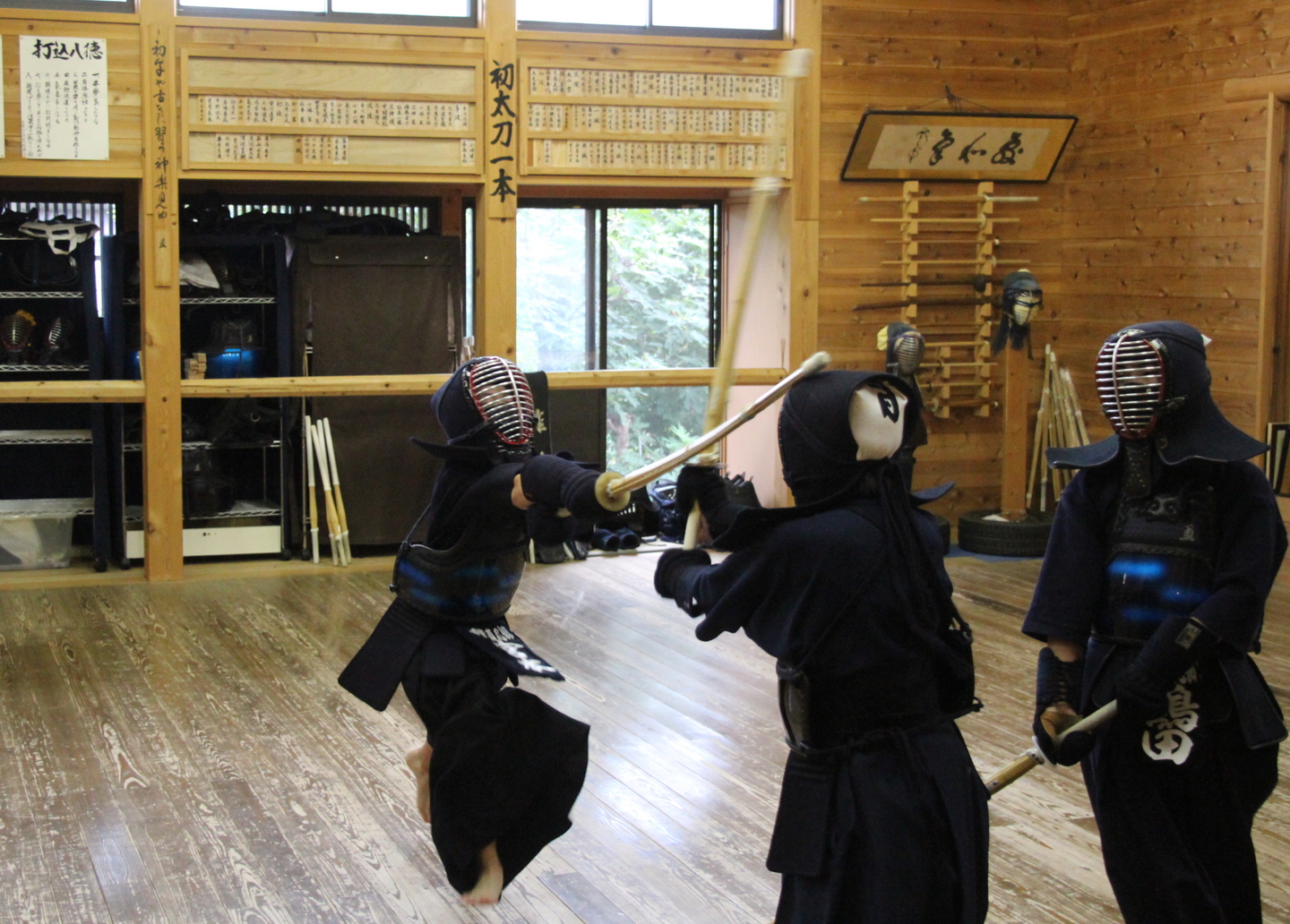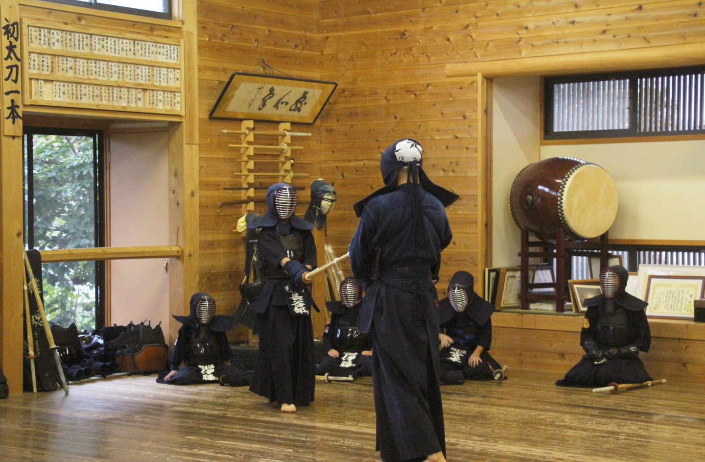 一人一人の発表を今回の教室では、竹刀打ちの場面にしました。一本目が面打ち、二本目が小手面打ち、三本目が面打ちです。