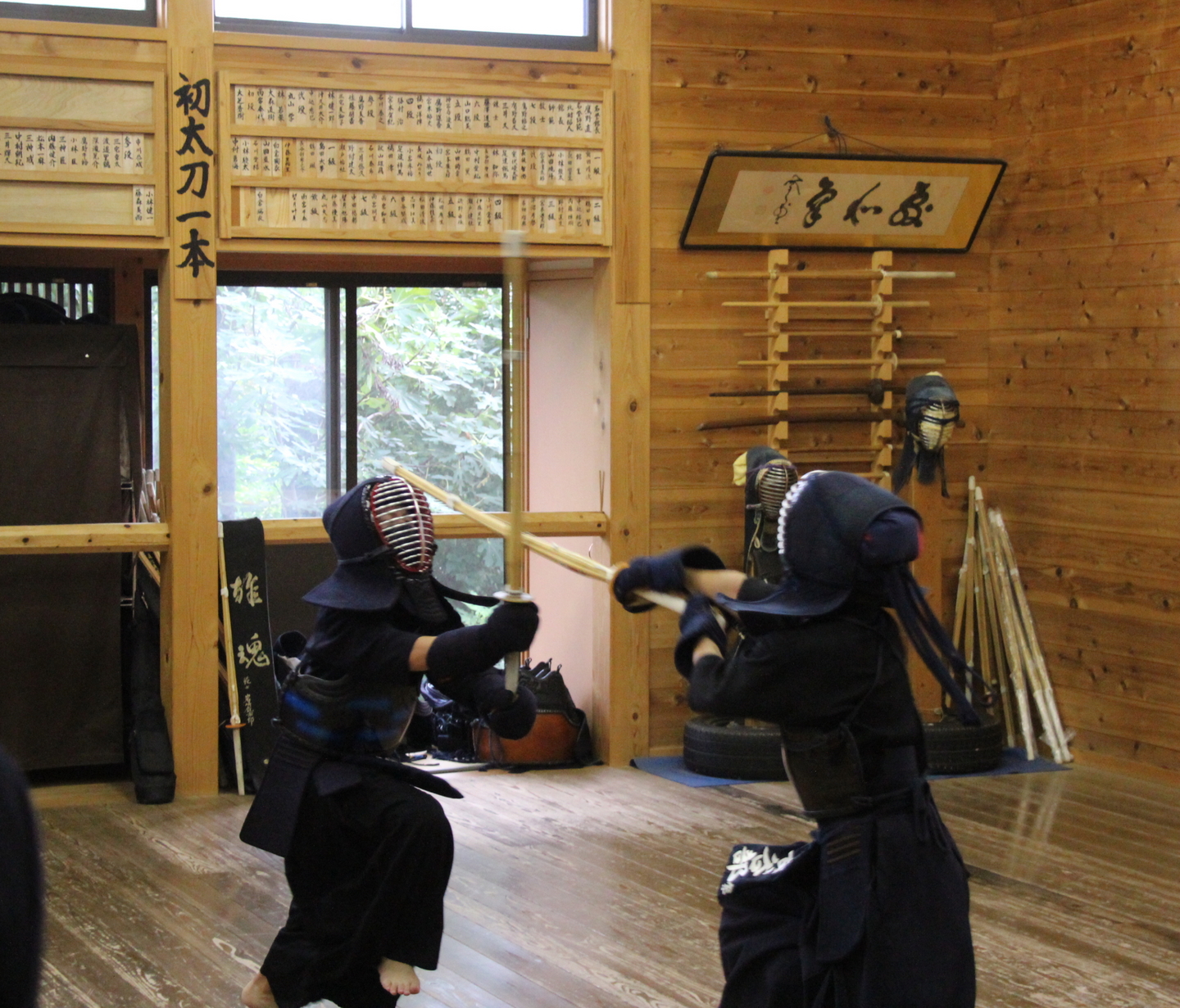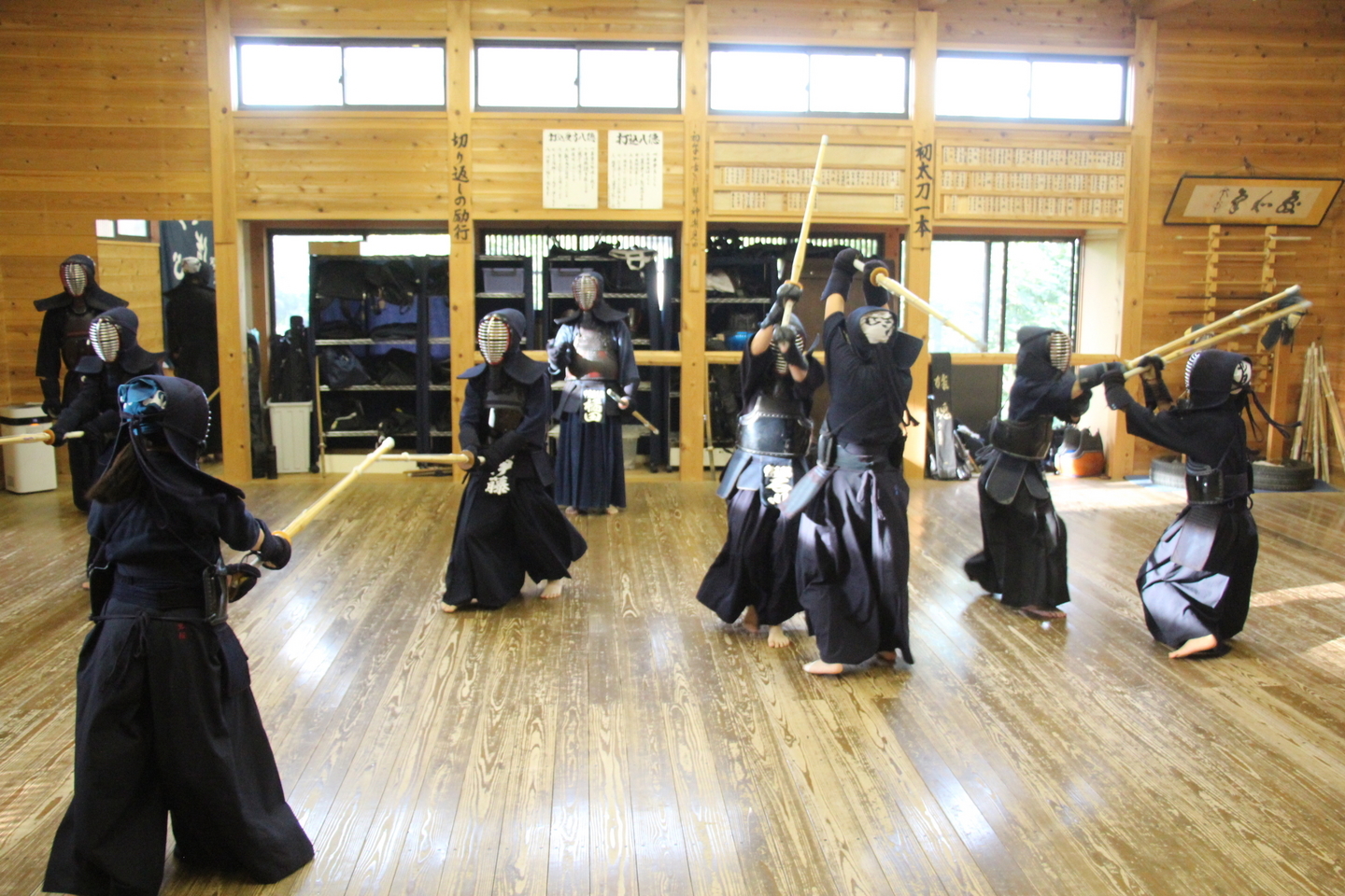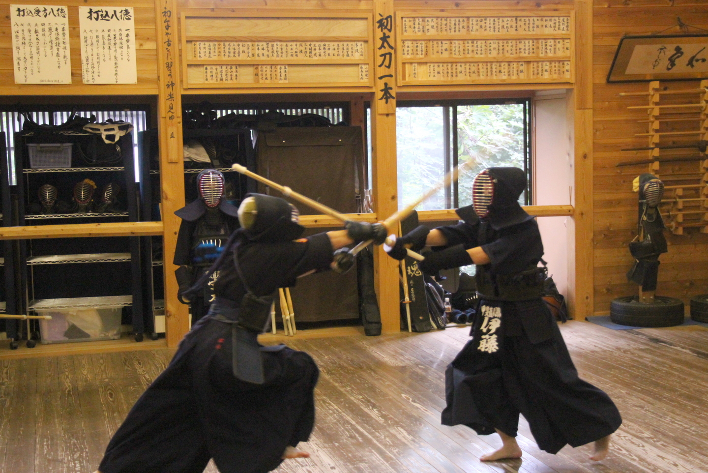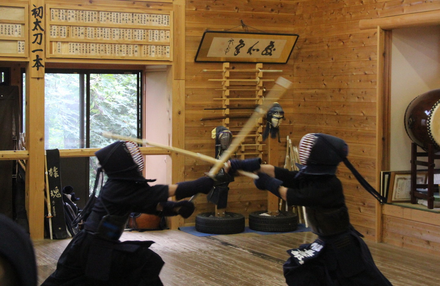 一人一人の発表を今回の教室では、竹刀打ちの場面にしました。一本目が面打ち、二本目が小手面打ち、三本目が面打ちです。