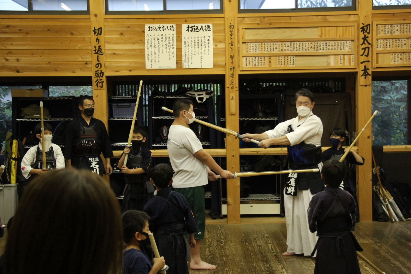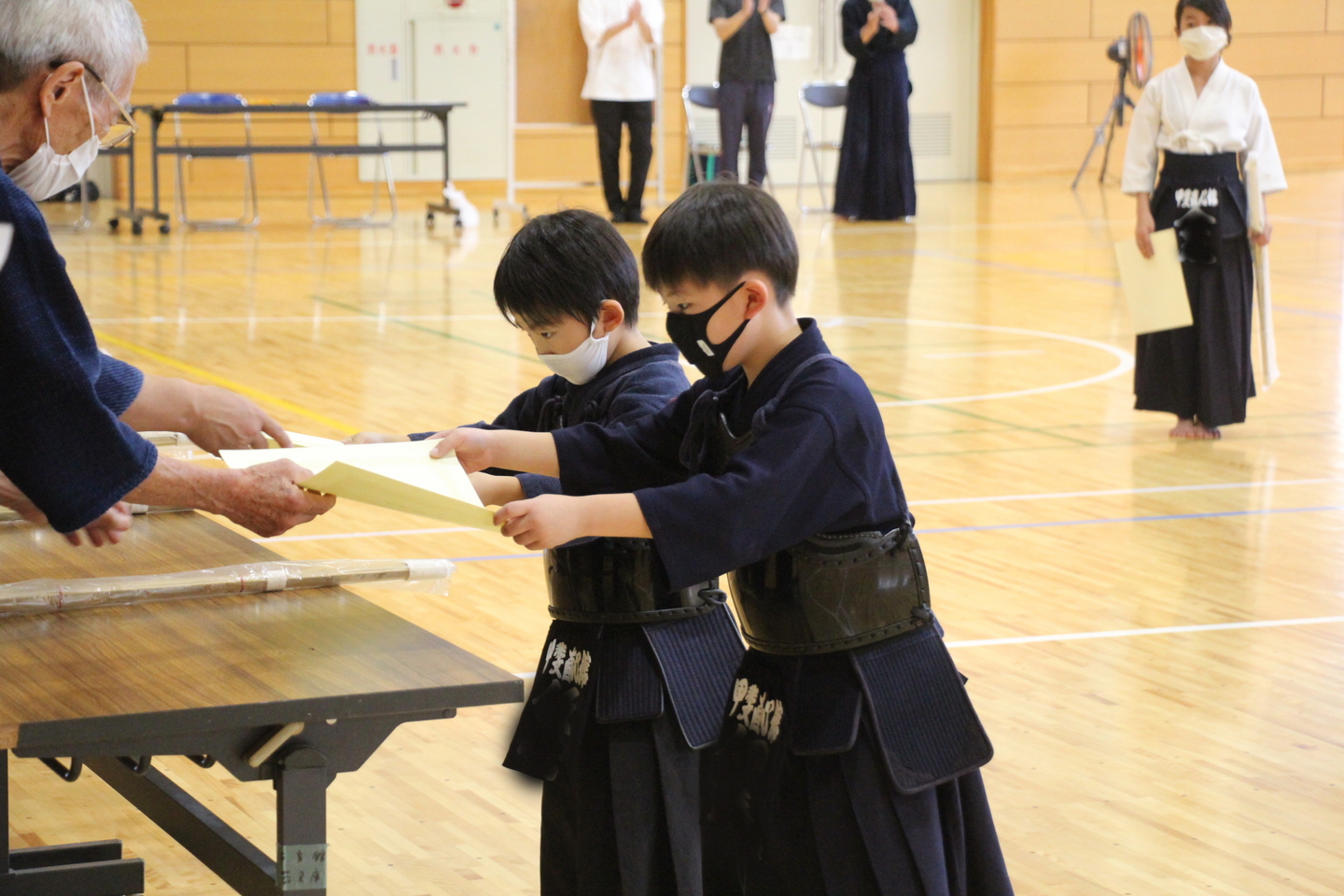 稽古場所の換気や消毒、清潔な使用に努め、毎回の検温カード提出を継続します。道場内、体育館・武道場等では手指消毒の徹底と面マスク(ウレタン素材は不可)を必ず着用してください。面を着けて連続30分間以上の稽古はしないようにします。剣道具の貸し借りも極力避けます。