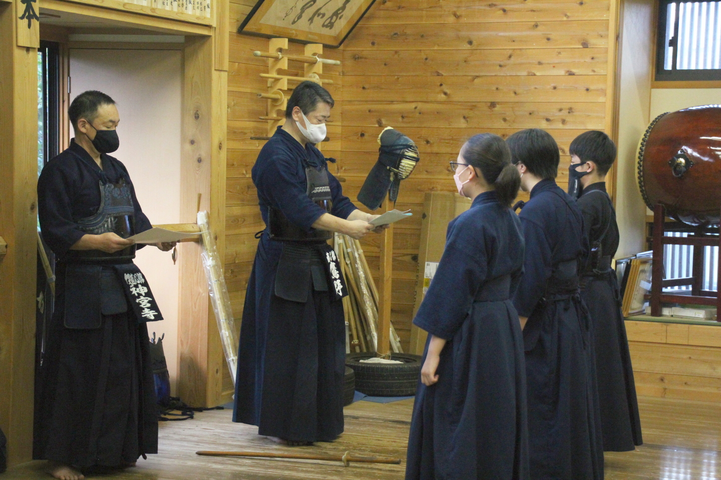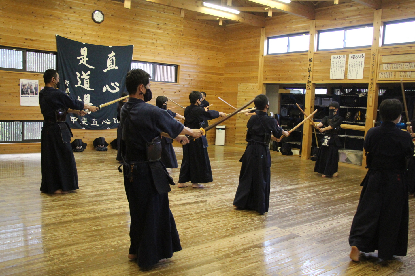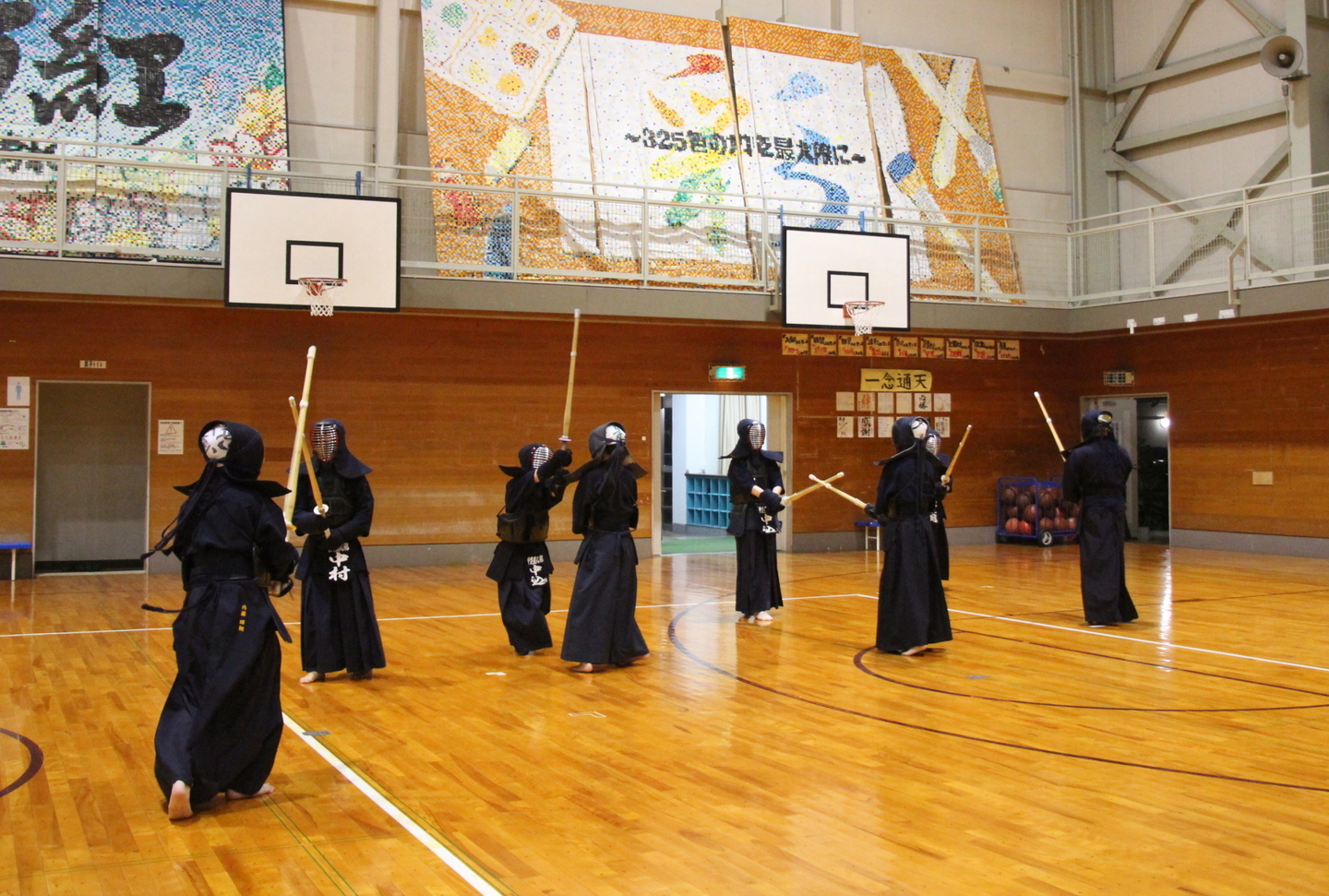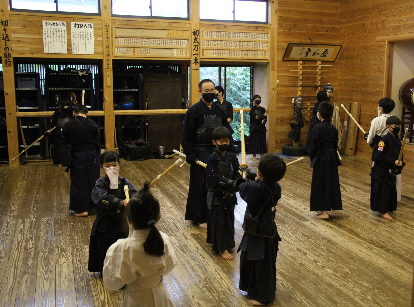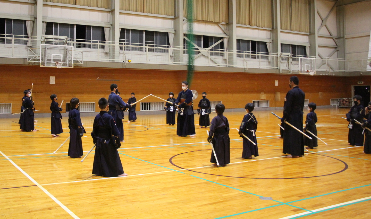 8種類の素振り200本を行い、全員で日本剣道形を修錬しました。日本剣道形を初めて学ぶ中学生は、木刀による剣道基本技稽古法で覚えた木刀の扱いや所作を大切にしながら学んでほしいと思います。日本剣道形は古流の粋(すい)を集めたもので、現代剣道でも根幹を成すものです。昇段審査のためのものでなく、真剣に学んでほしいと思います。
